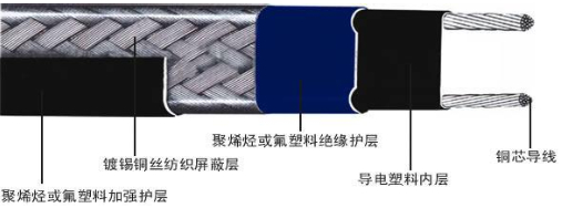 ①:鍍錫銅絞線 ②:內護套 ③:發熱絲 ④:外護套